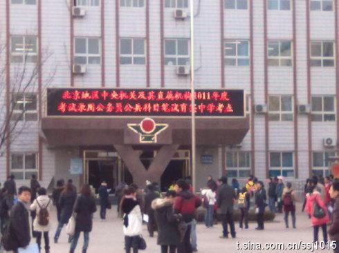 2011年国家公务员考试于12月5日9点正式开考,新浪微博网友在即将进入考场的时间里忙里偷闲,拿出手机拍下百万考生赶考的紧张时刻,并通过微博与网友分享。