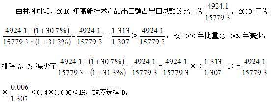 2010年高新技术产品出口额占出口总额的比重与上年相比约: