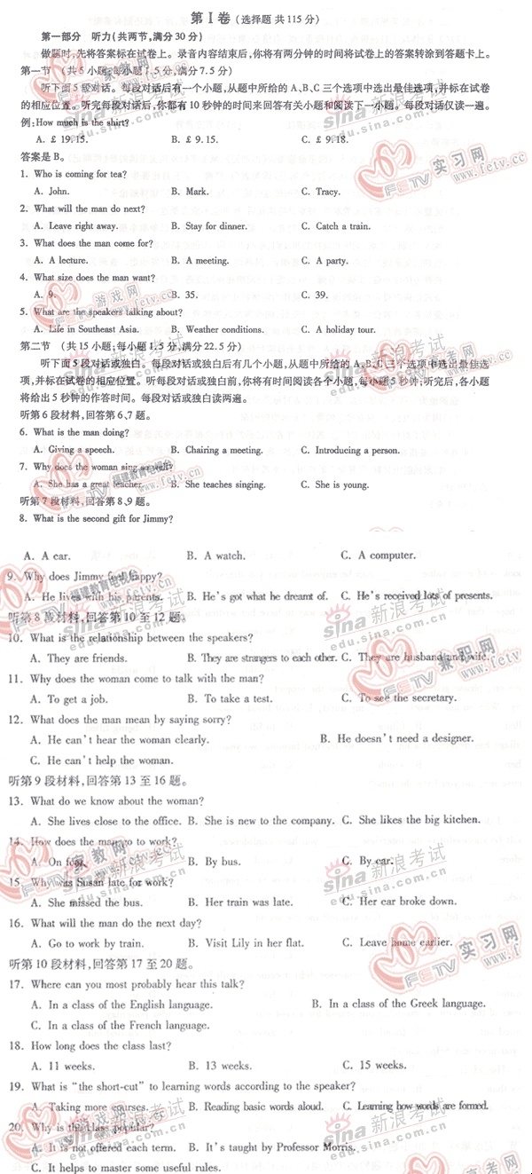 作者:佚名 文章来源:新浪考试 点击数: 更新时间:2007-6-11 15:08:13