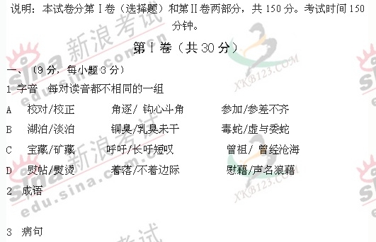2007年高等学校全国统一考试语文试题(江苏卷)